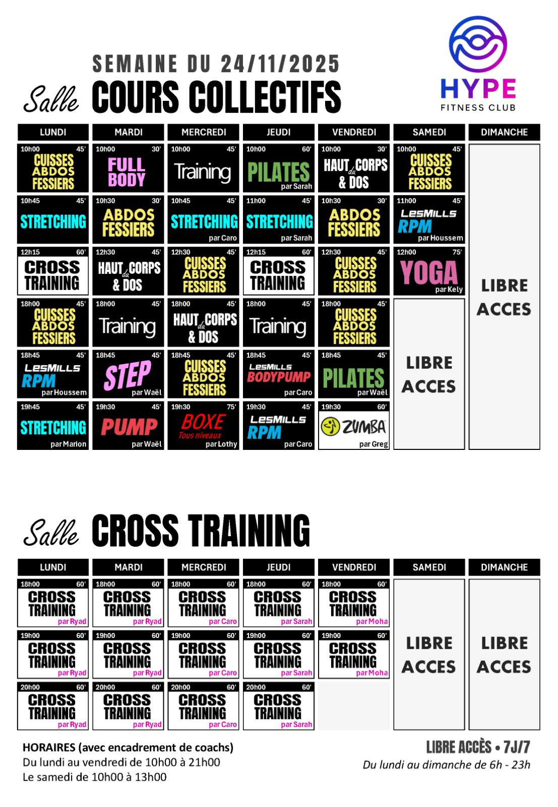 Vous pouvez découvrir tous les cours collectifs proposés dans notre salle en consultant le planning hebdomadaire.